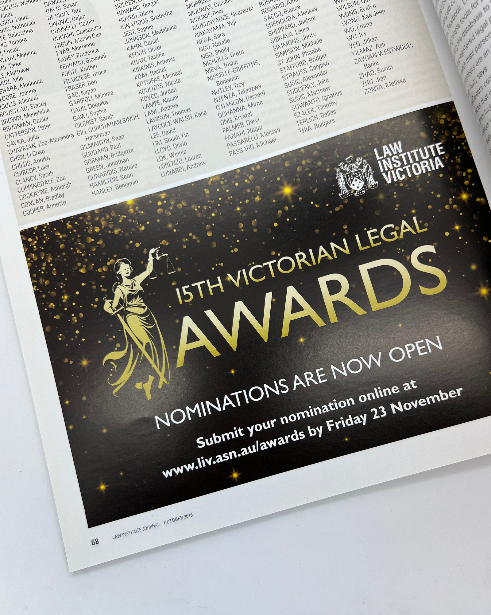 Each year while I worked for the Law Institute of Victoria I created the branding for the annual Legal awards. These events awarded the most prestigious law firms across Australia and hosted hundreds of professionals at black tie evenings. My role for these events included creating all of the printed and online advertising for voting and registering to attend the event. Printed high-quality invitations and printed booklets, which were placed at each attendees table. Animated lectern videos and the presentation shown a large screen on stage to display all of the winners names, which was played throughout the night. I also designed the glass trophies that each winner was awarded on the evening.